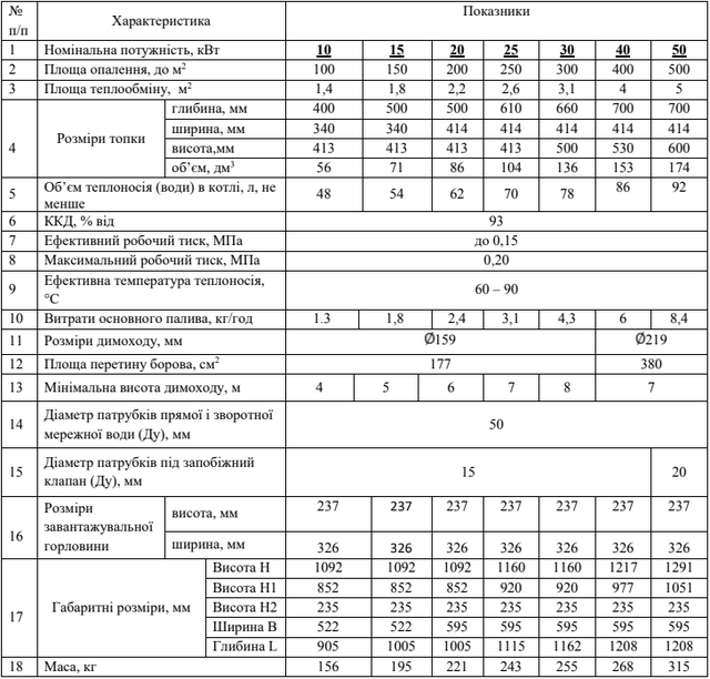 ТЕХНИЧЕСКИЕ ХАРАКТЕРИСТИКИ КОТЛОВ